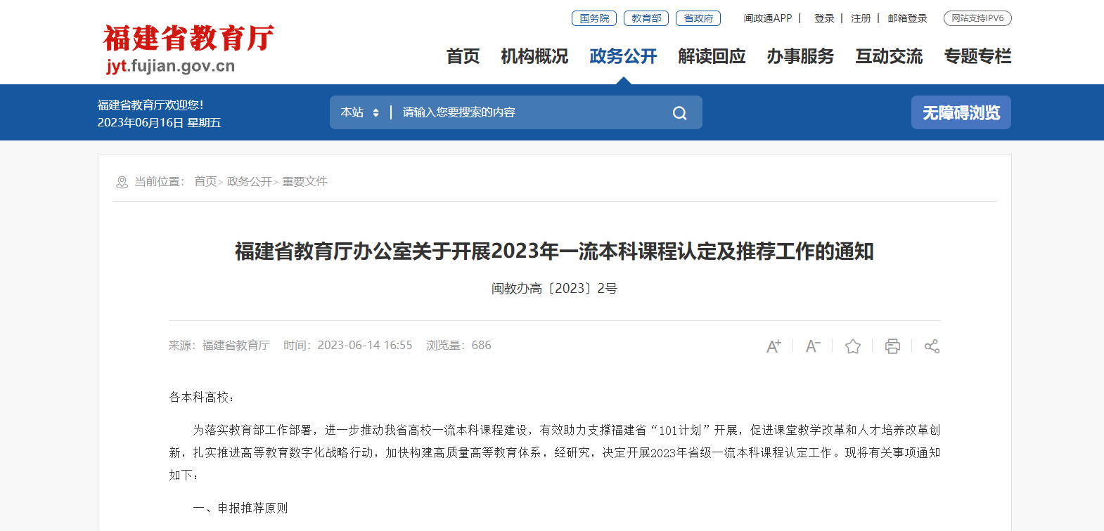 為落實(shí)教育部工作部署,進(jìn)一步推動(dòng)我省高校一流本科課程建設(shè),有效助力支撐福建省“101計(jì)劃”開(kāi)展,促進(jìn)課堂教學(xué)改革和人才培養(yǎng)改革創(chuàng)新,扎實(shí)推進(jìn)高等教育數(shù)字化戰(zhàn)略行動(dòng),加快構(gòu)建高質(zhì)量高等教育體系,經(jīng)研究,決定開(kāi)展2023年省級(jí)一流本科課程認(rèn)定工作。現(xiàn)將有關(guān)事項(xiàng)通知如下: